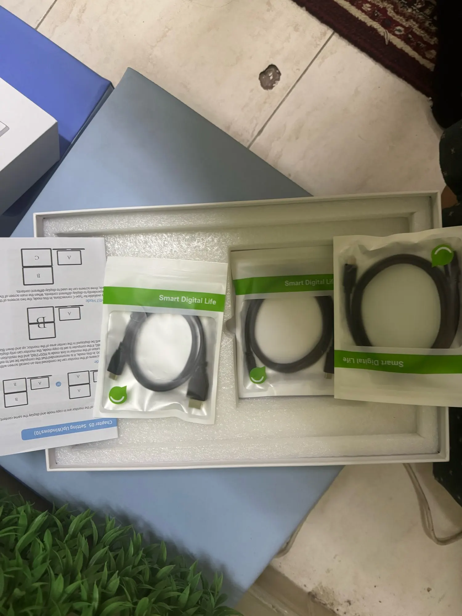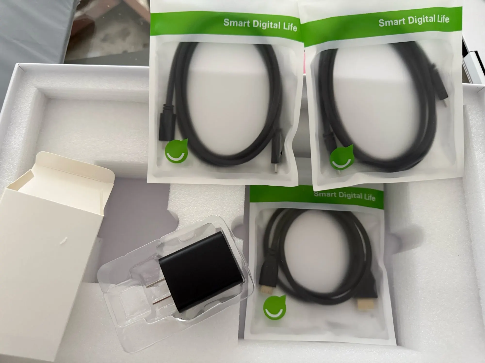 To get three screens with different images, you need to use two Type-C cables that are also included in the kit.